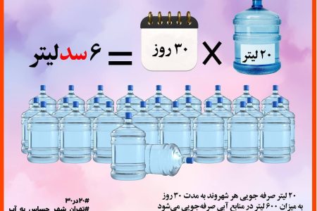 هر فرد فقط با صرفهجویی روزانه ۲۰ لیتر در مدت ۳۰ روز میتواند ماهانه ۶۰۰ لیتر از هدر رفت آب جلوگیری کند.